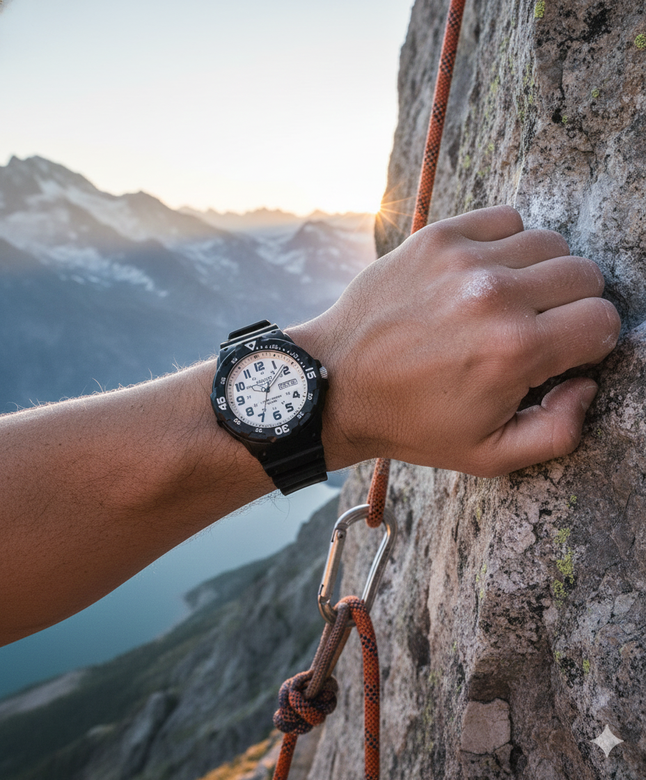 Designed for those with an active lifestyle, the MRW-200H-7BV is equipped with 100-meter water resistance and a bidirectional rotary bezel, making it a practical choice for swimming, snorkeling, or simply tracking elapsed time during daily tasks. At just 39 g, it provides "all-day comfort" while maintaining a rugged, substantial presence on the wrist.